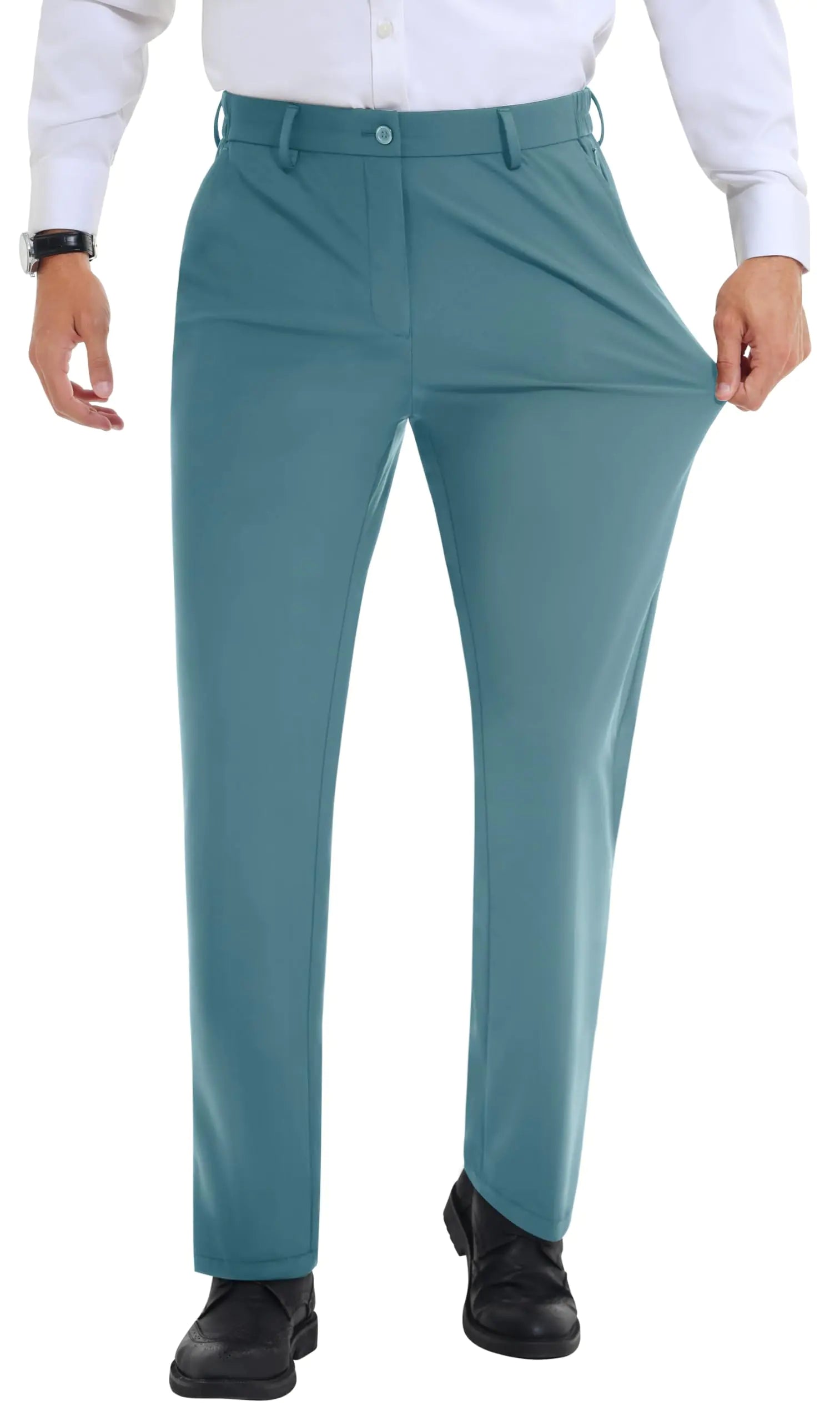 Lion Nardo Mens Stretch Dress Pants Slim Fit Dress Pants for Men Expandable Waist Dress Pants Casual Athletic Golf Pants Ocean Blue